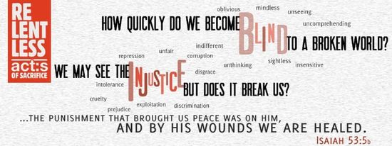 Are we broken by the injustice in the world we see? Do we allow ourselves to be interrupted by it? Or do we just harden and close ourselves off to it in the busyness of our lives? One of my prayers this week is that Jesus would open my eyes to see the world as he sees it; to rejoice in all that is good, but to be broken by what cause him to be broken.