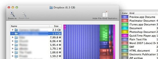 The quickest solution I found was to download an application called Disk Inventory X*. It is designed to analyse your entire hard drive and show what is using all the space. One of the nice features is that you can set it up to only look in specific folders. Using this you can then analyse the contents of your Dropbox and produce a detailed report showing the folders that have the most data within, and which files are the biggest.