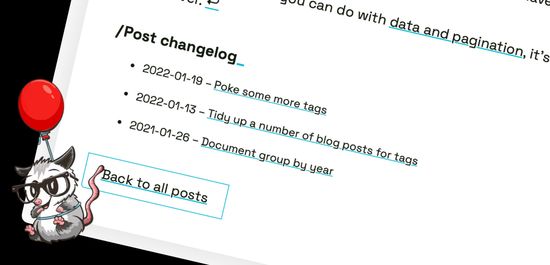 Which got me thinking… would it be possible to use something similar to get a changelog for each blog post on the site?